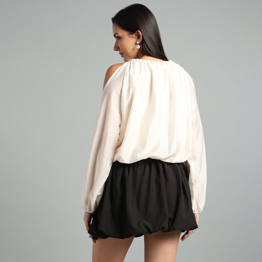 Chic Off-White Cold Shoulder Blouse