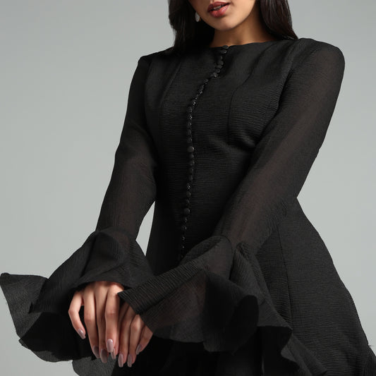 Out of stock!Black Ruffle Hem Dress For Women | Evening Outfits