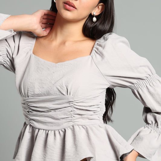 Chic Grey Square Neck Peplum Top