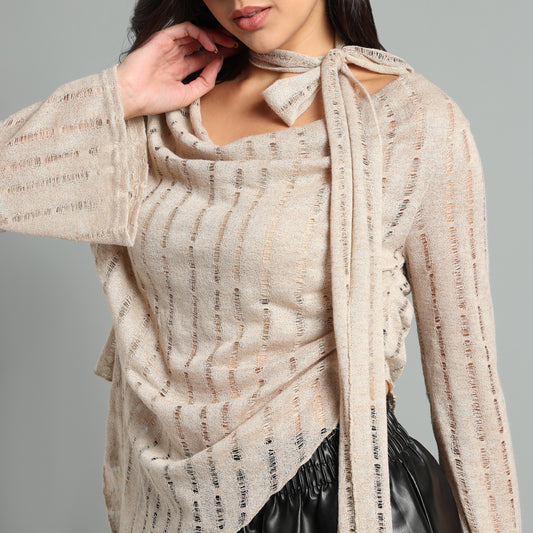 Chic Asymmetric Knit Top with Tie Detail