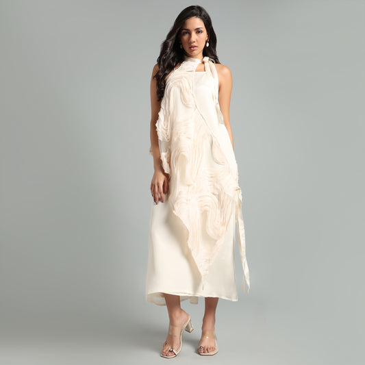 Asymmetrical Maxi Dress with Floral Design Cape